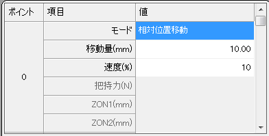 現在位置から指定された移動量分、フィンガを移動するモードです。