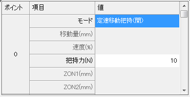 把持動作速度を変更したい場合は、ハンド把持速度調整機能で設定します。詳細は「ハンド把持速度調整機能」を参照してください。