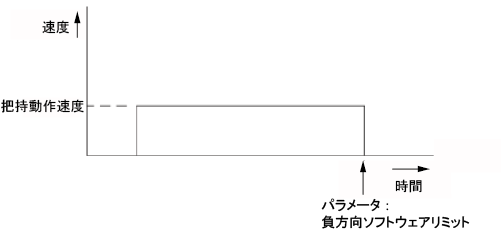 定速移動把持(閉)の場合は、閉方向ソフトウェアリミットへ向かって移動し、定速移動把持(開)の場合は、開方向ソフトウェアリミットへ向かって移動します。