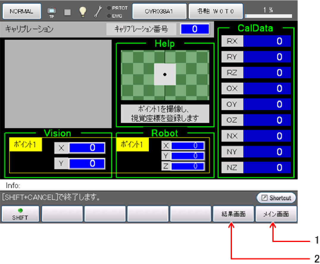 下記のキャリブレーション用画面を用意しています。3点教示式キャリブレーション作業に使用することができます。