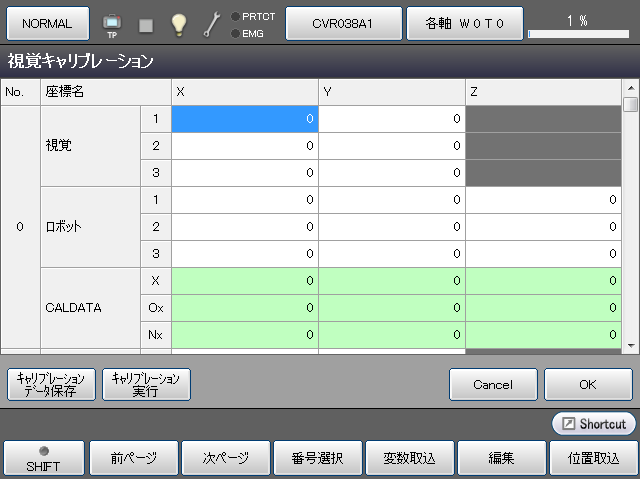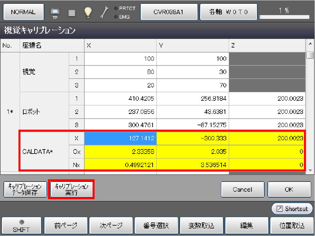 - 視覚座標、ロボット座標とも3点すべて入力されていないと、エラーになり計算はされません。