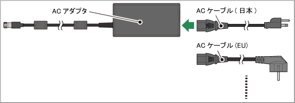 また、ACアダプタはEU用とEU以外の国で形状が異なります。EU用のACケーブルを選択した場合は、EU用のACアダプタが付属します。