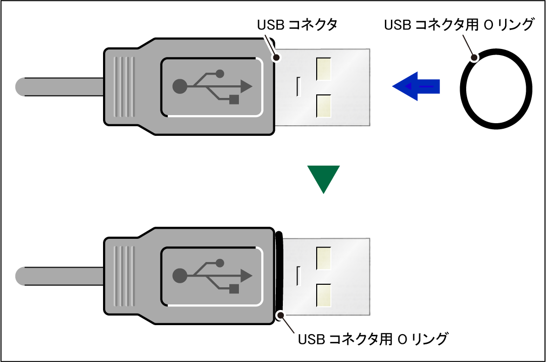 USBコネクタ用Oリングは、コネクタ抜け防止と静電気耐性向上のために使用します。