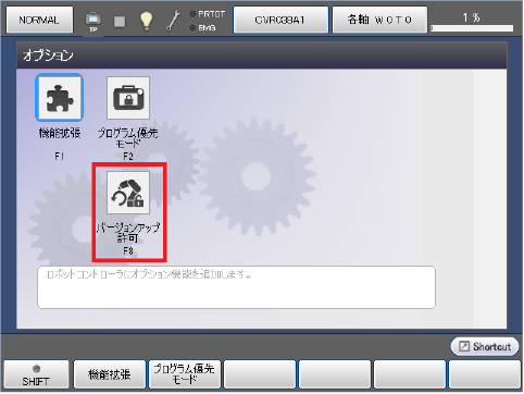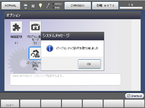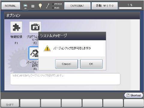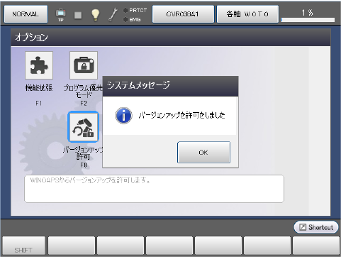 [オプション]画面で、[F8 バージョンアップ許可]ボタンを押します。