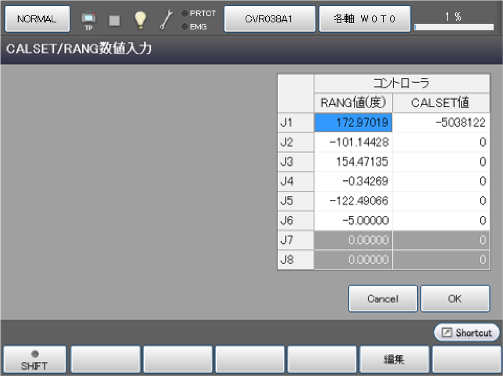 ロボットのRANG値・CALSET値をテンキーから直接入力してRANG値・CALSET値の設定を行います。