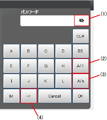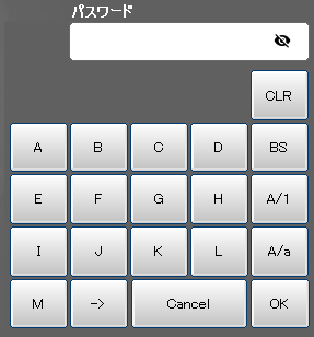 ユーザレベル変更時のログインパスワード入力、およびログインパスワード変更時には、専用の入力キーが表示されます。
