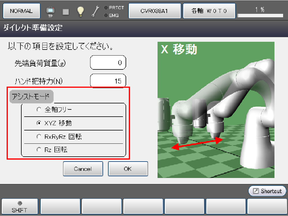 XYZ移動アシストダイレクトモード