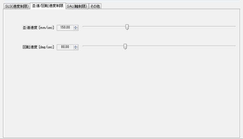 | 並進 | 並進速度の制限値。並進/回転速度制限タブで編集できます。 |