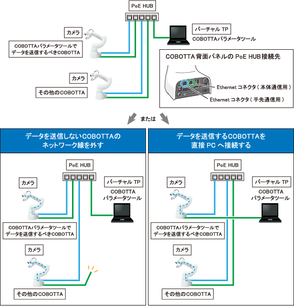その状態でCOBOTTAパラメータツールのデータを送信した後、接続を元に戻してください。