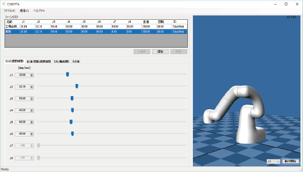 - 場面AでCOBOTTAを使用する場合、動作させる前に、シーンリストから"場面A"を選択し、COBOTTAに送信します。