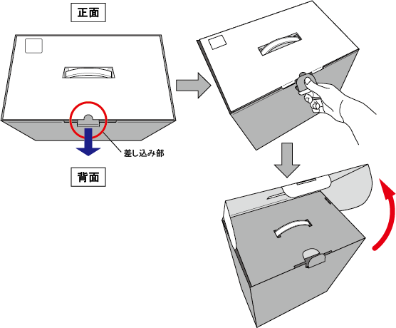 箱上部の差し込み部を引き出し、上蓋を持ち上げます。