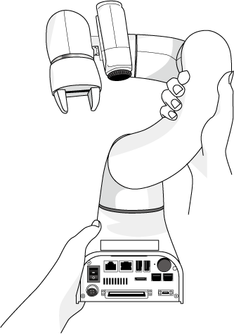 COBOTTAのベース部分とアーム部分を両手で保持し、緩衝材 (スチロール) から引き上げます。