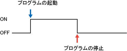 すべてのプログラムが停止した場合にOFFするので、停止したことを外部へ出力できます。
