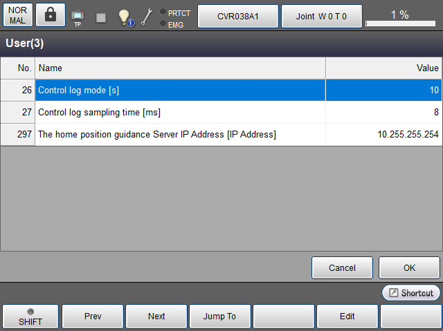 设定控制Log的记录时间、控制LOG的记录间隔、原点复位服务器IP地址。