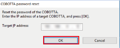 显示IP地址的输入画面,输入对象COBOTTA的IP地址,按下“OK”。
