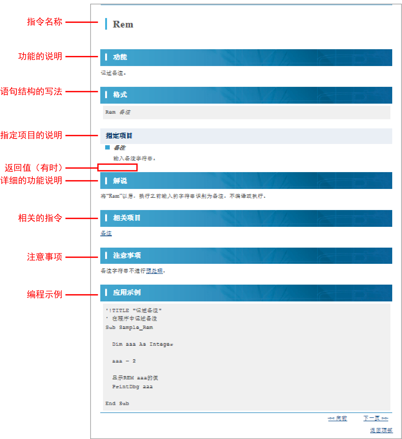 说明内容(红框部分)的构成。