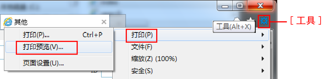 操作路径:浏览器[工具]按钮—“打印”—“打印预览”