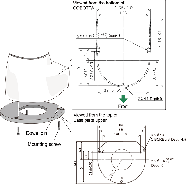 用螺丝将安装在COBOTTA的上基础盖板固定到下基础盖板使用。