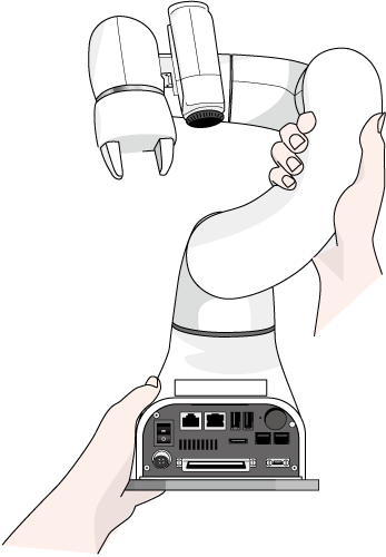 上基础盖板可安装在COBOTTA上搬运。但是,请用双手保持上基础盖板和COBOTTA机械臂部分搬运。
