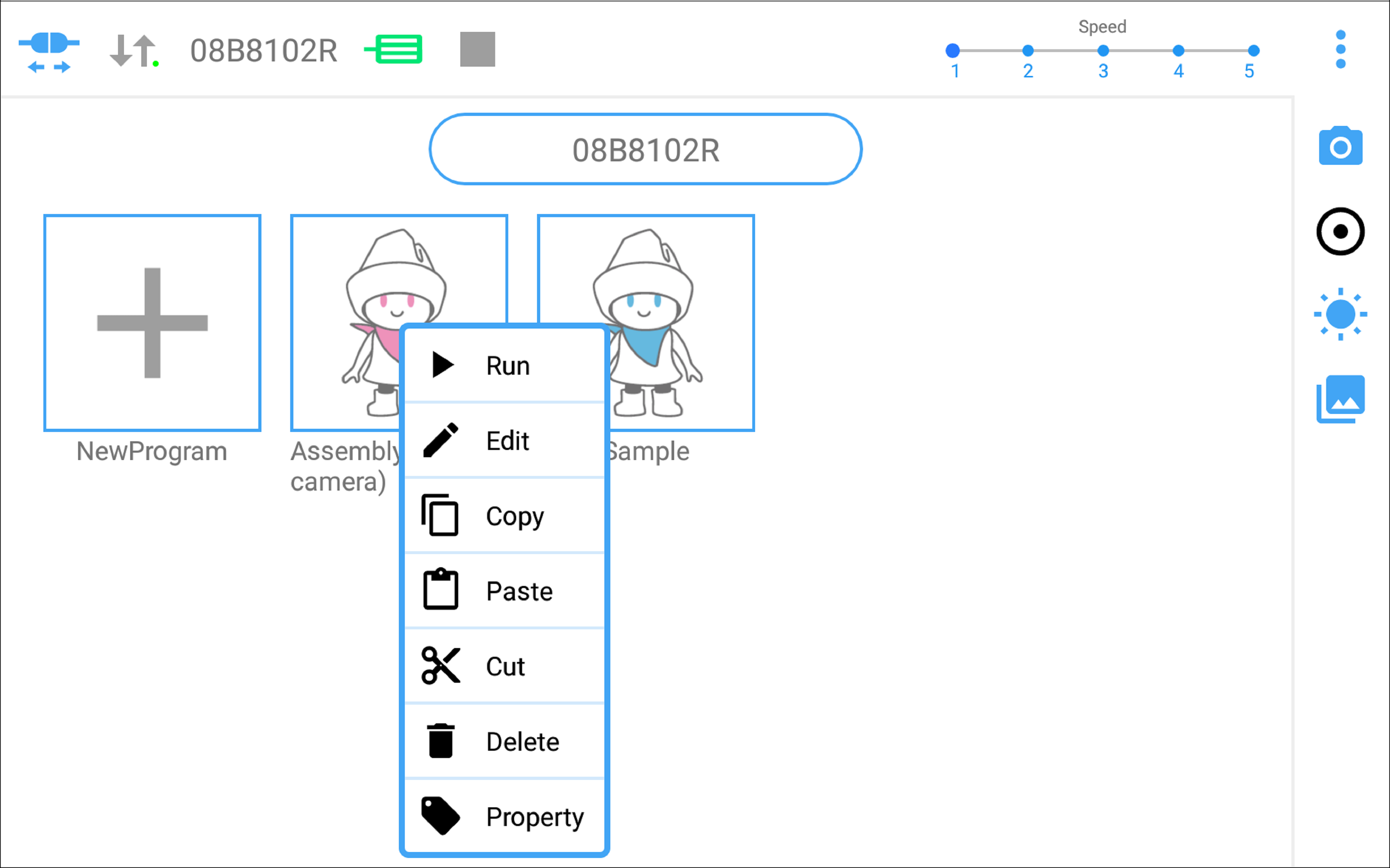 在其他COBOTTA基本画面点击要复制的作业,执行[复制]。之后,返回当前连接的COBOTTA基本画面。请点击新追加或现有作业,进行[粘贴]。