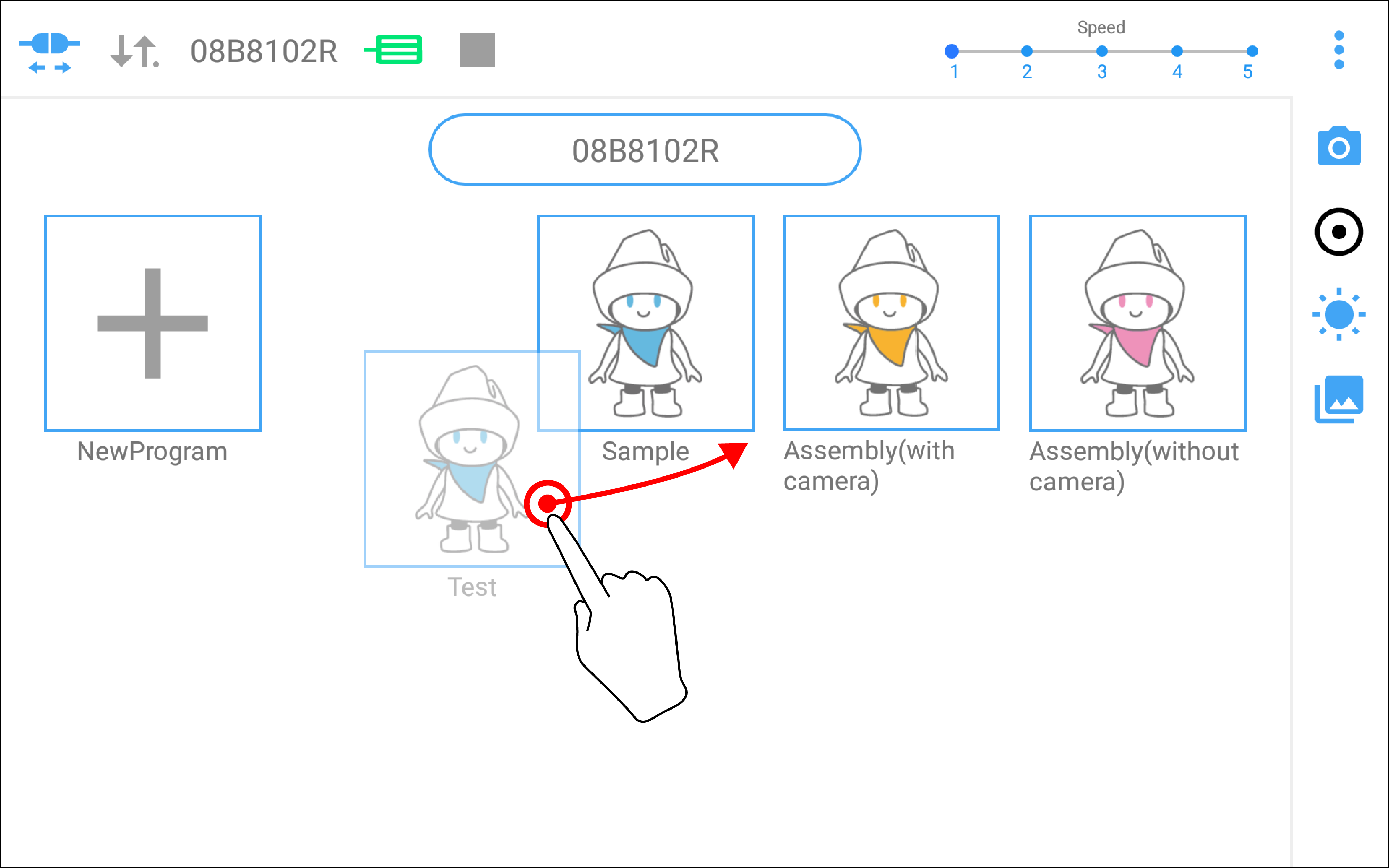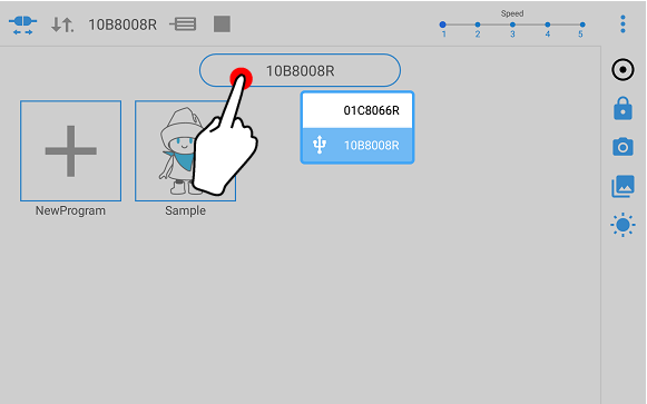 显示COBOTTA的名称。可从设定画面变更名称。另外,点击该图标后,可以显示用该平板电脑连接的其他COBOTTA基本画面。 | |