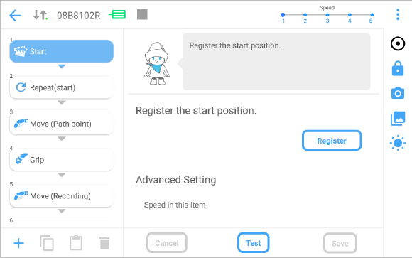 可确认COBOTTA的参数。 | |