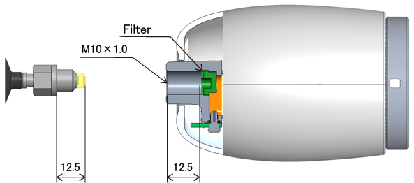 尤其是使用弹簧式衬垫支架时,请选择包括行程在内,安装螺丝部长度在12.5mm以内的衬垫支架。如果是可安装在M10×1.0螺丝孔的衬垫支架及真空垫,可直接安装到电动真空发生器。