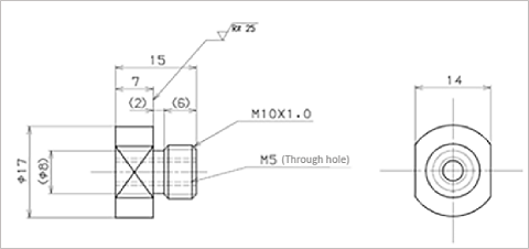 请参考以下图纸制作转换接头。参考图纸中为将M10×1.0转换成M5通孔。