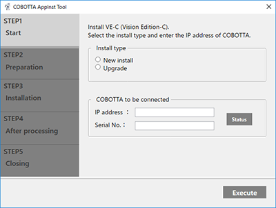 从“开始”菜单的“全部程序”中启动“DENSO ROBOTICS”/“COBOTTA AppInstTools”。