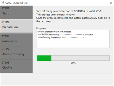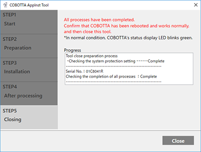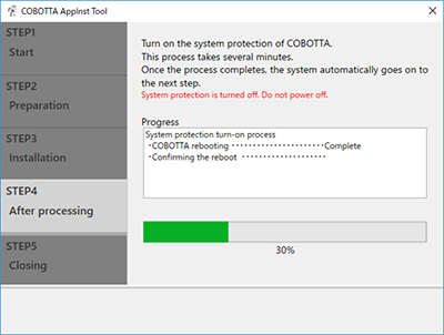 确认已显示“处理已全部完成”的信息后,请手动重启COBOTTA。
