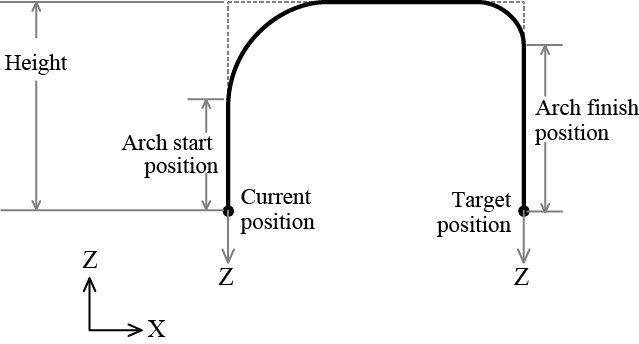 ArchMove 目标位置, 高度[, 弧形开始位置[, 弧形完成位置]]