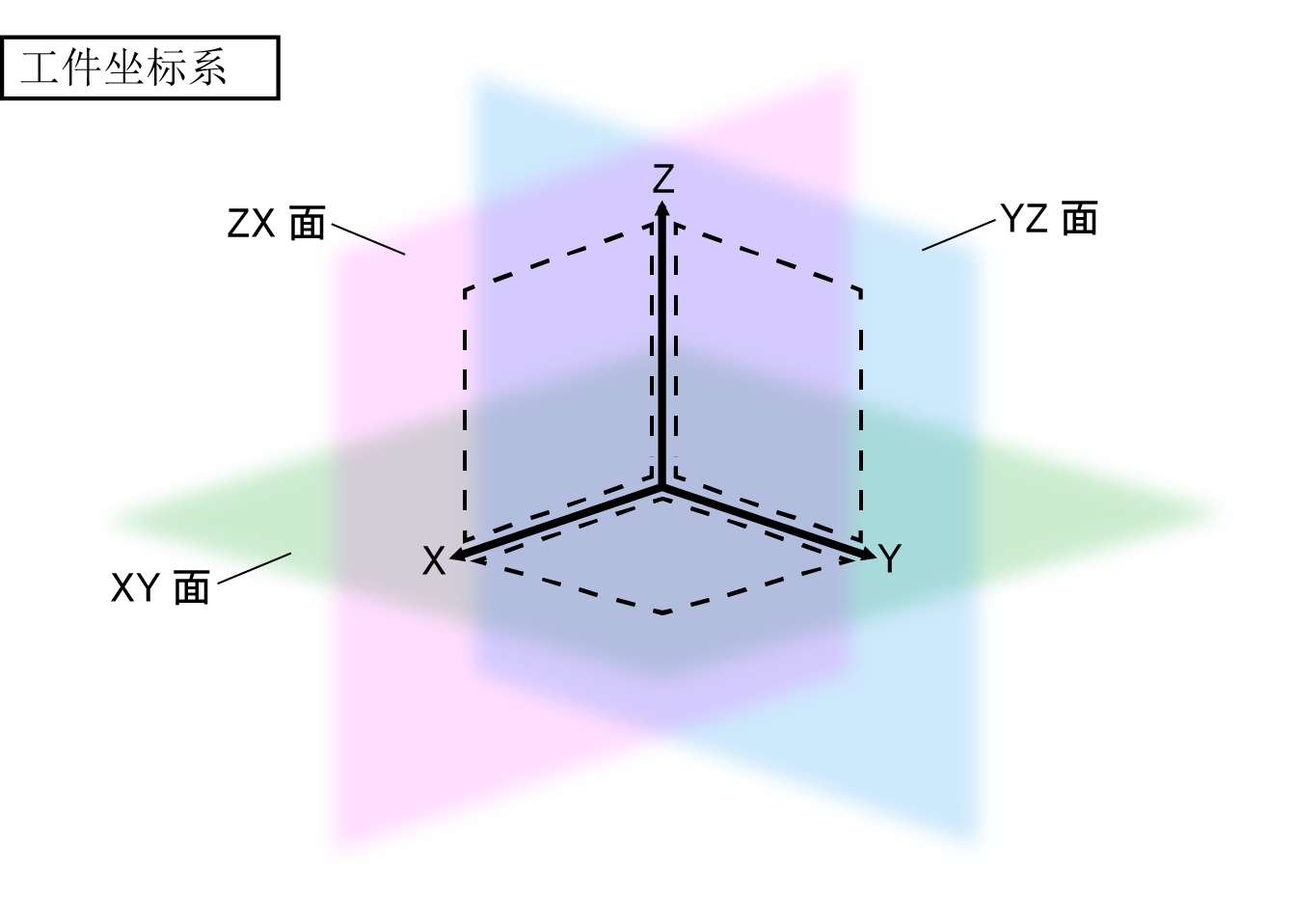 - 以当前的工件坐标系为基础的平面:“XY”、“YZ”、“ZX”