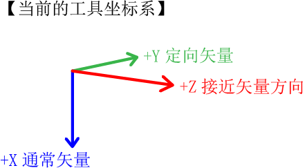 当前的工具坐标系如下图实施的状态时,动作事例如下所示。