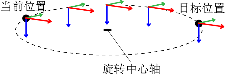 如果指定为“Pose = 1”,在执行圆弧动作的同时姿势也以旋转中心为轴旋转。