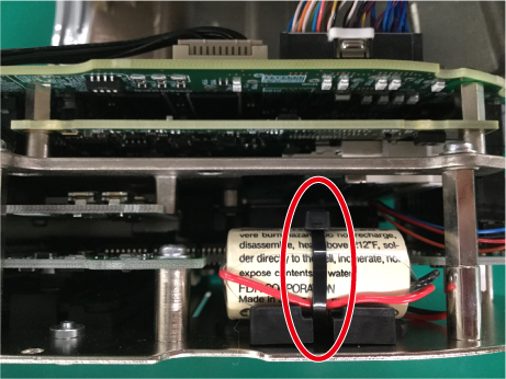 用钳子剪断固定锂原电池的扎带,取出锂原电池。