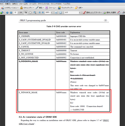 | 通用定义的错误代码 | 请参照"ORiN2 编程指南"的2.2.7章"错误编码"。ORiN2_ProgrammersGuide_ja.pdf (PDF:1,453KB) |
