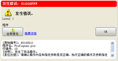 使用Cognex In-Sight插件执行错误指令时发生独立错误的示例。