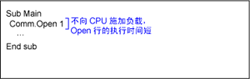 任务未通过Comm.Close从打开状态变为停止状态时,解除任务的排斥处理,但是保持线路的打开状态。第2次以后的Comm.Open不施加CPU负载。