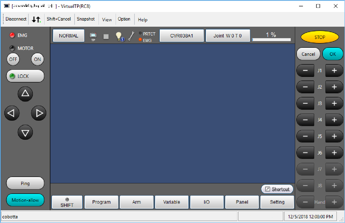 通过Ethernet通信连接操作终端和COBOTTA。