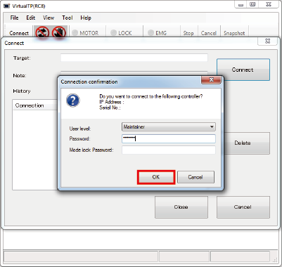 将虚拟TP连接到COBOTTA时需要输入密码。请选择要登录的用户等级并输入密码。