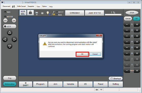 如果按[OK],则与COBOTTA的连接被断开。