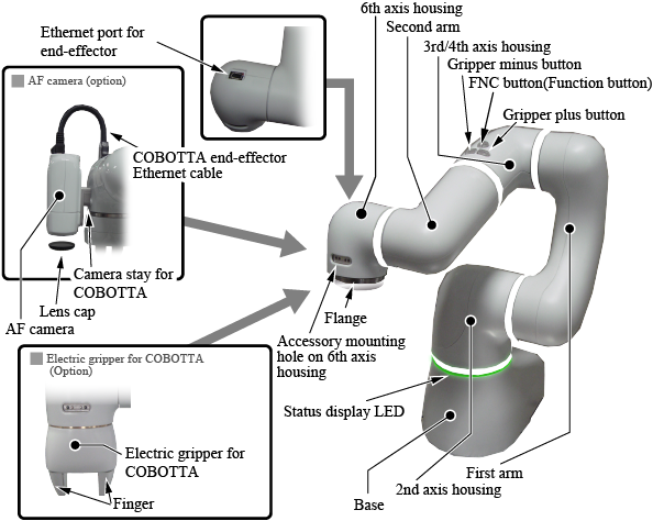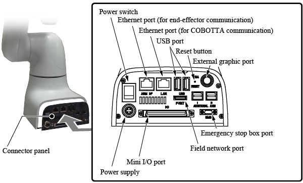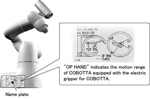 COBOTTA的下图位置粘贴有记载COBOTTA序列号及型号等信息的 铭牌。