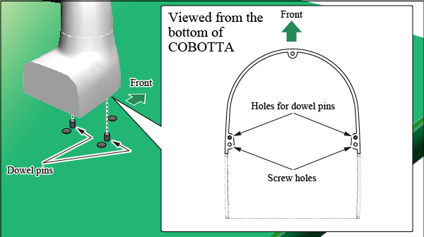 请注意避免定位销进入COBOTTA的螺纹孔内。