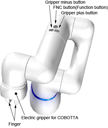 - 按下COBOTTA的夹治具负按钮或夹治具正按钮。