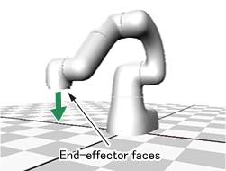 例如,在安装COBOTTA用电动夹钳的状态下,臂前端不向下(±10°)时,可搬运质量为