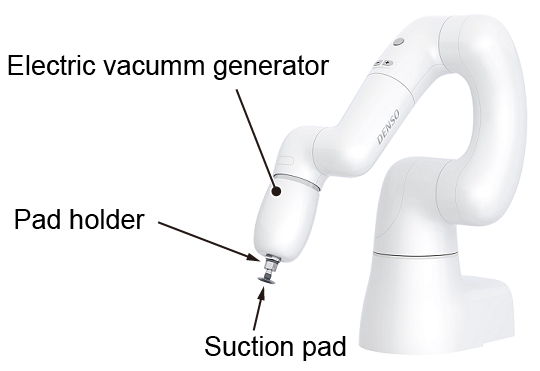 真空垫及衬垫支架可拆除。根据客户用途更换真空垫,可以应对各种不同形状的工件。关于真空垫和衬垫支架的拆卸、安装的方法请参照 “COBOTTA用电动真空发生器”。