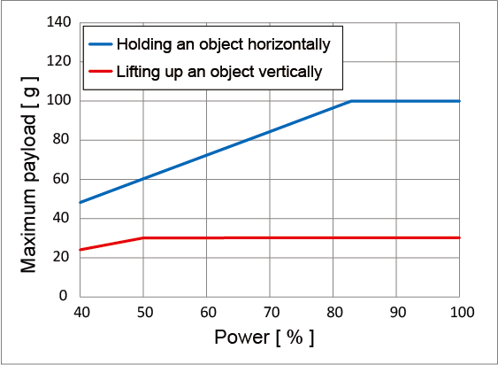 可用COBOTTA搬运的工件质量(“可搬运质量”)会根据搬运工件时的COBOTTA姿势发生变化。在没有安装COBOTTA专用终端受动器的状态下,可搬运质量如下。
