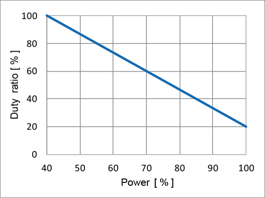 | Duty比[%] = 100 * 1个循环中的电动真空发生器运转时间 / 1个循环动作时间 |
