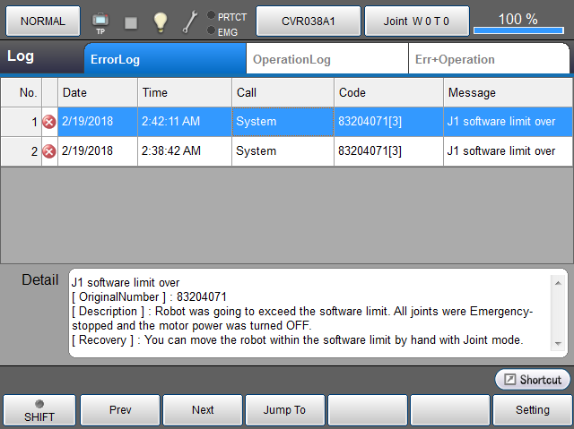 可记录COBOTTA发生的错误Log。