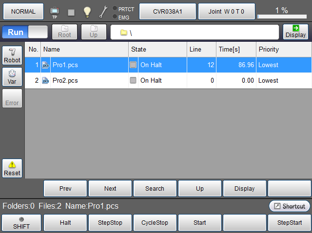 循环停止可通过远程TP/虚拟TP操作。